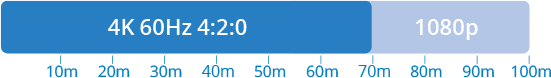 • Supports 4K UHD video up to 70m (3840 x 2160 @30Hz 4:4:4, 4096 x 2160 @24Hz 4:4:4, and 4K @60Hz 4:2:0)